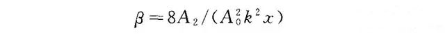 式中:x為傳播距離;A。,A₂分別為基波幅值,二次諧波幅值;k為波數,近似認為x和k為定值,采用相對非線性系數β'代替β,即β'=A₂/A2。